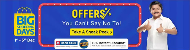 Get 10% Instant Discount with HDFC Bank Credit/Debit Cards & EMI Transactions made at Flipkart During the Big Shopping Days.